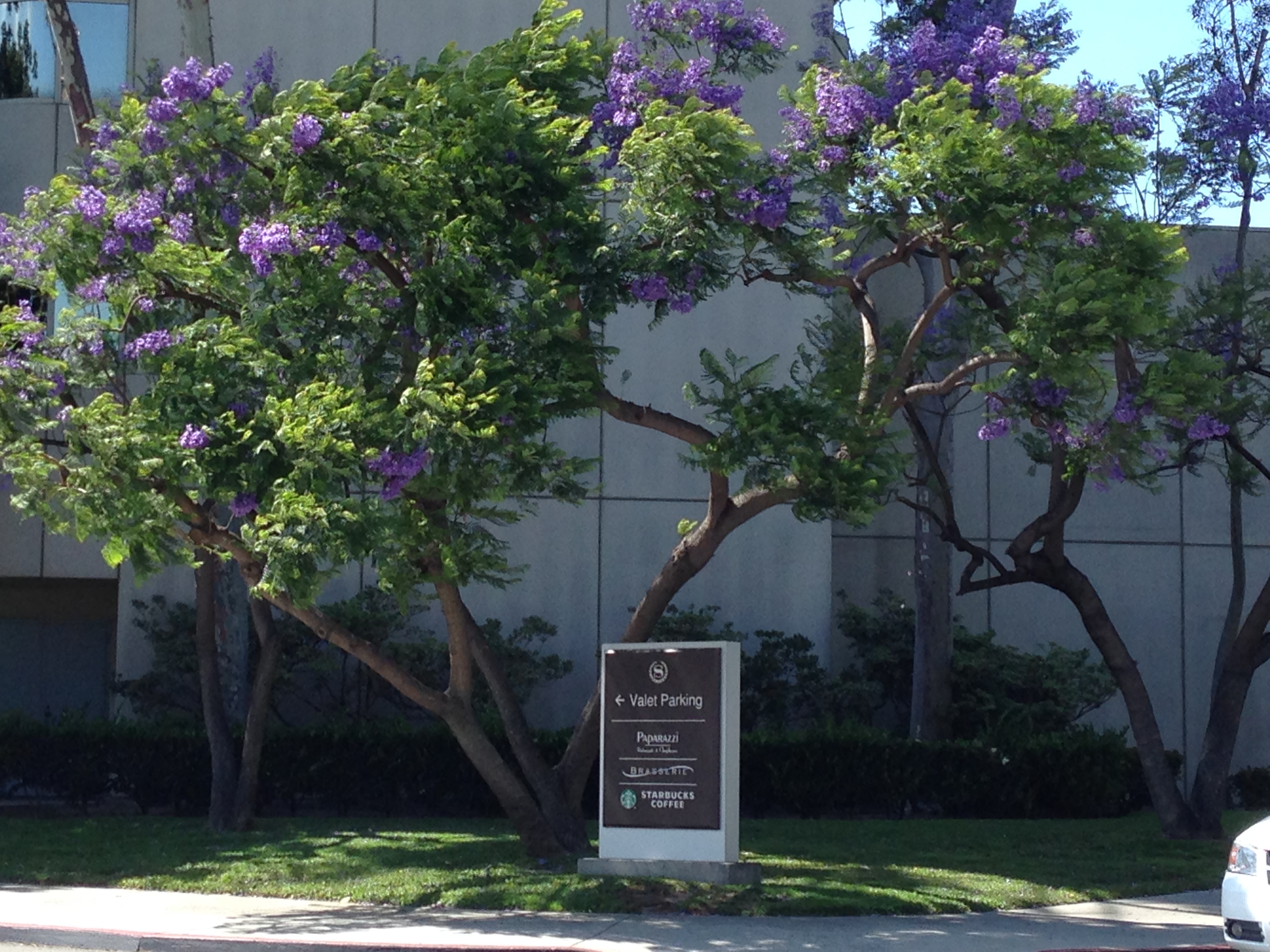 As i followed the Jacarandas lining Century Blvd. i passed the Marriott hotel. About a block or two further down the road i paused on a corner. There was a narrow street, more like a driveway, going off to the right. I looked diagonally across towards the Crowne Plaza hotel. Across the driveway from where i was standing, on the opposite corner by the hotel entrance, there was a small grove of blooming Jacarandas. I looked at them for some time. It wasn’t so much looking, more like merging with. I was aware of being pulled toward something familiar, comforting and peaceful. A pull to go sit beneath the trees and meditate, to allow myself to be held by these old friends and sink into emptiness.