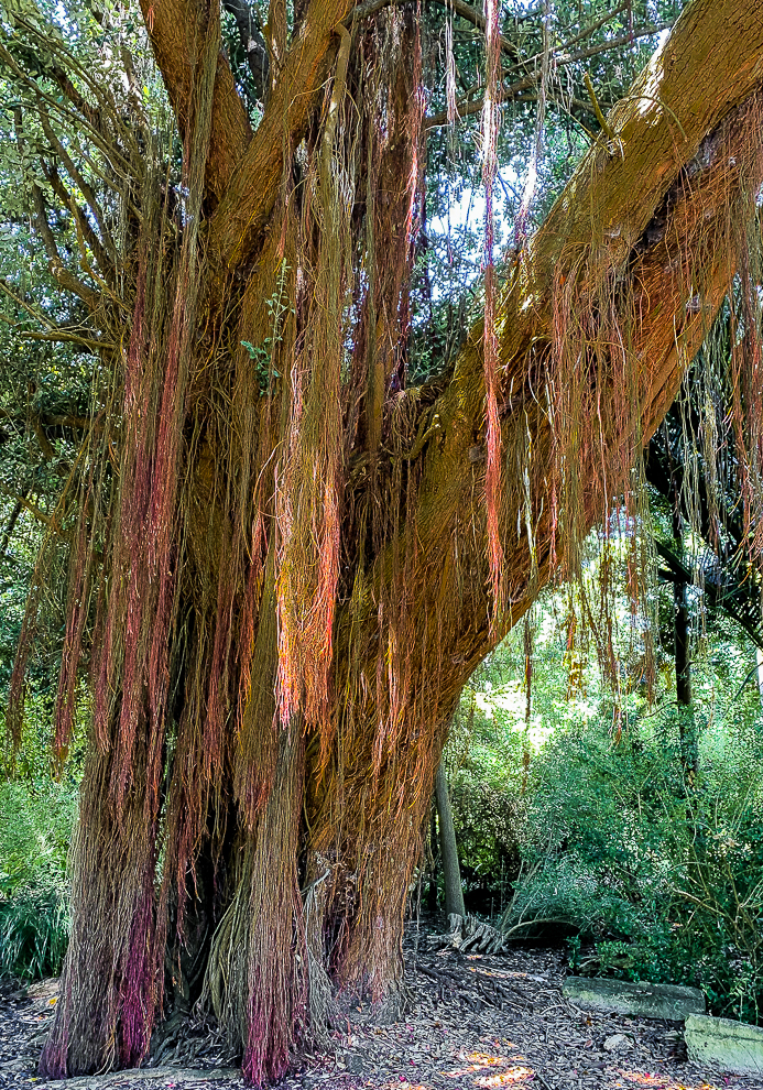 No I don’t know what kind of tree it is. I searched online and there are several trees that have reddish aerial roots. The one I found that looked the closest to this one is a tree that is native to New Zealand. Next time I go to the park I will ask at the info kiosk if they know.