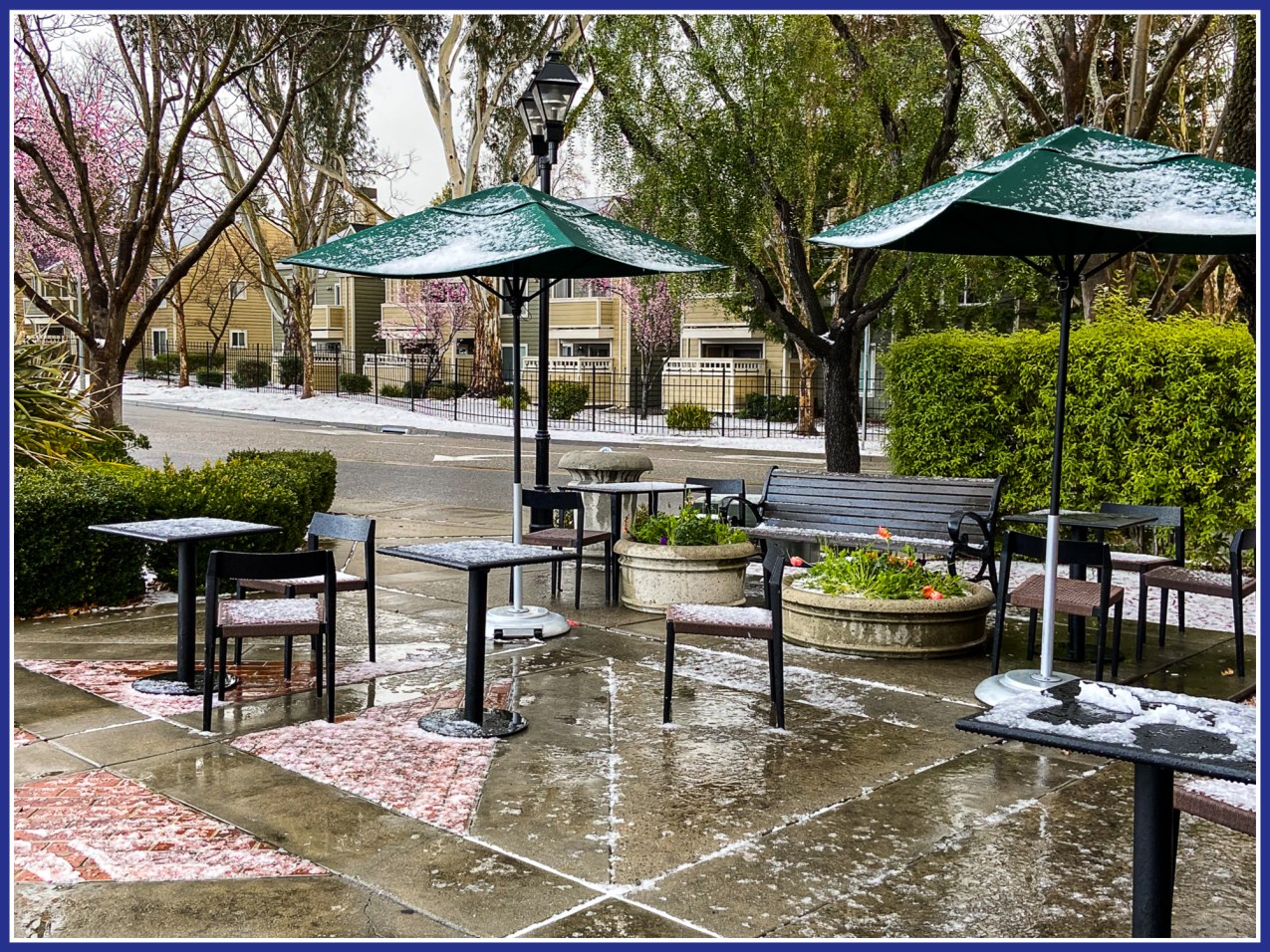Hail Storm … in San Ramon??? By AratiFebruary 22, 2022 ( 5 ) 2-22-2022 Share this: Click to share on Facebook (Opens in new window) Facebook Click to share on WhatsApp (Opens in new window) WhatsApp Click to print (Opens in new window) Print Click to email a link to a friend (Opens in new window) Email Like Loading... Categories: Landscapes, Photography, The JourneyTags: 2-22-2022, Cold, Environment, Hail, Photography, San Ramon California, Storm, Weather Related Articles Closing out 2024 – Preparing for 2025 By AratiDecember 31, 2024 ( 2 ) Monochrome Mondays: Dredging the harbor By AratiDecember 30, 2024 Storm surge aftermath – upper harbor – Santa Cruz, California – December 2024 By AratiDecember 29, 2024 ( 4 ) 5 comments › VINEETA LOVELL February 23, 2022 • 12:57 pm Wow! > LikeLiked by 1 person Reply ↓ Arati March 3, 2022 • 12:49 am Yes! LikeLike Reply ↓ sandyjwhite February 23, 2022 • 9:07 am I can deal with all kinds of weather…….but not hail. I’ve had cars destroyed by it, twice. LikeLiked by 1 person Reply ↓ Arati March 3, 2022 • 12:52 am Yes, hail storms can indeed be intense! LikeLiked by 1 person Reply ↓ Pepper February 23, 2022 • 5:03 am Oh, no! 😏 LikeLiked by 1 person Reply ↓ your thoughts, reflections are welcomed Cancel reply Δ This site uses Akismet to reduce spam. Learn how your comment data is processed.