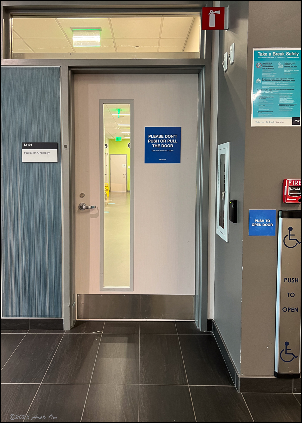 Thursday Doors: Knowing what’s behind these By AratiJuly 27, 2023 ( 4 ) 30 Radiations – 5 Chemos …. DONETime to heal and regroupWhat’s my new normal?I’ll find out …. Share this: Click to share on Facebook (Opens in new window) Facebook Click to share on WhatsApp (Opens in new window) WhatsApp Click to print (Opens in new window) Print Click to email a link to a friend (Opens in new window) Email Like Loading... Categories: Photography, Structures, The JourneyTags: Chemo, Doors, Helen Diller Comprehensive Cancer Center, Radiation, San Francisco, Thursday doors, UCSF Medical Center, UCSF Mission Bay Related Articles Closing out 2024 – Preparing for 2025 By AratiDecember 31, 2024 ( 2 ) Monochrome Mondays: Dredging the harbor By AratiDecember 30, 2024 Storm surge aftermath – upper harbor – Santa Cruz, California – December 2024 By AratiDecember 29, 2024 ( 4 ) 4 comments › picpholio July 28, 2023 • 1:30 am May I wish you all the best and a lot of strenght ! LikeLiked by 1 person Reply ↓ Andy L July 28, 2023 • 3:10 am Wishing you a positive outcome from the treatments Arati. My own cancer treatment in 2021 was similar- 5 chemo, 25 radiation sessions and then extensive surgery some months later . Still here, still blogging,thanks to my higher power! LikeLiked by 1 person Reply ↓ Arati August 6, 2023 • 1:44 pm Thank you. May you be well and surrounded by all the support and care you could possibly want for. LikeLike Reply ↓ Arati July 28, 2023 • 12:18 pm Thank you very much. LikeLiked by 1 person Reply ↓ your thoughts, reflections are welcomed Cancel reply Δ This site uses Akismet to reduce spam. Learn how your comment data is processed.