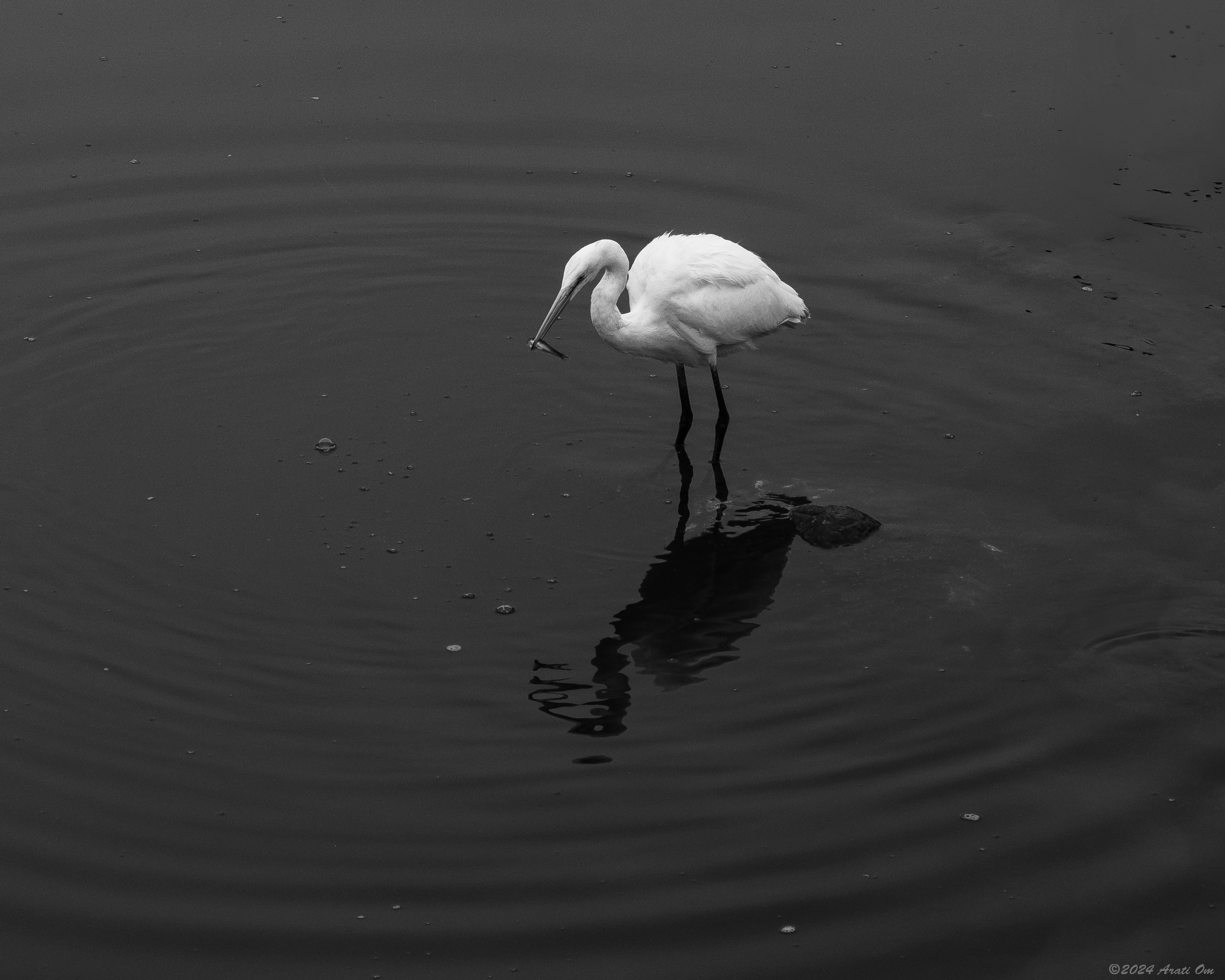Take the plunge! Peggy and I have captured a number of photos of herons and egrets fishing. Always a challenge to catch them in the act. Arati. Great monochrome photos.